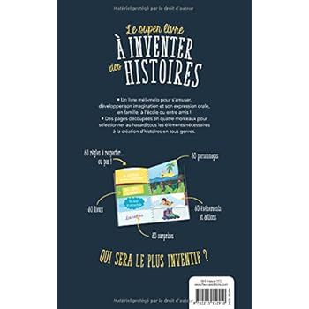 - Un livre méli-mélo pour s'amuser, développer son imagination et son expression orale, en famille, à l'école, ou entre amis ! - Des pages découpées en quatre morceaux pour sélectionner au hasard tous les éléments nécessaires à la création d'histoires en tous genres : 60 personnages, 60 lieux, 60 événements et actions, 60 surprises, plus 60 règles à respecter (ou pas). Qui sera le plus inventif ?